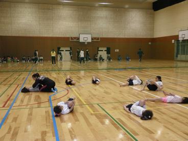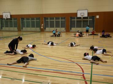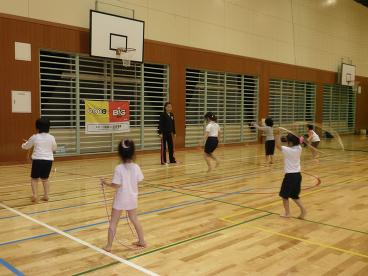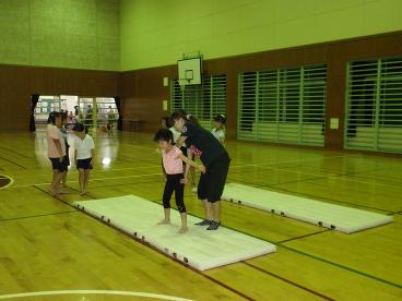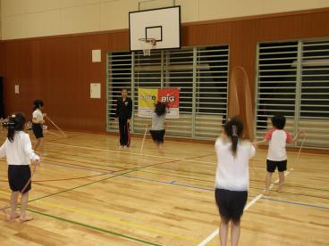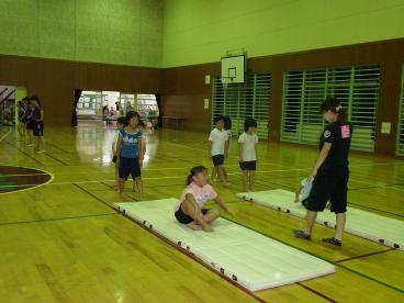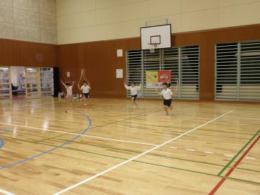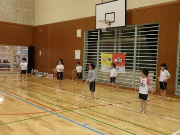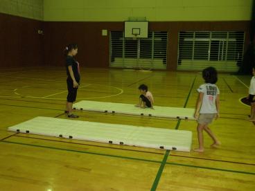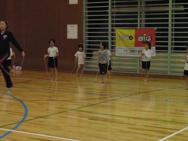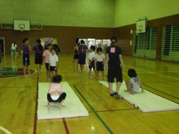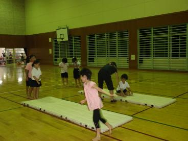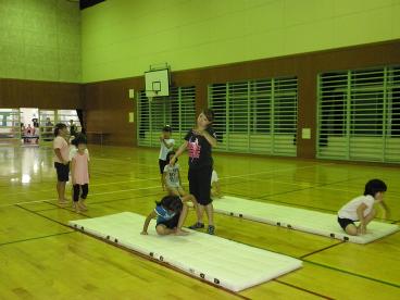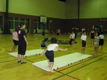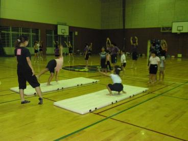 8月12日。子供新体操教室の練習風景です。