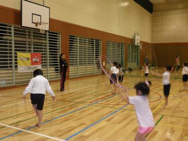 5月12日。こども新体操教室の練習風景です。