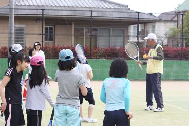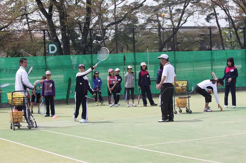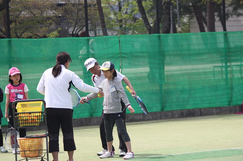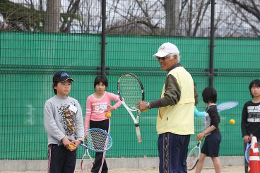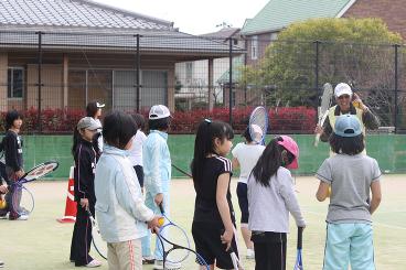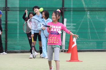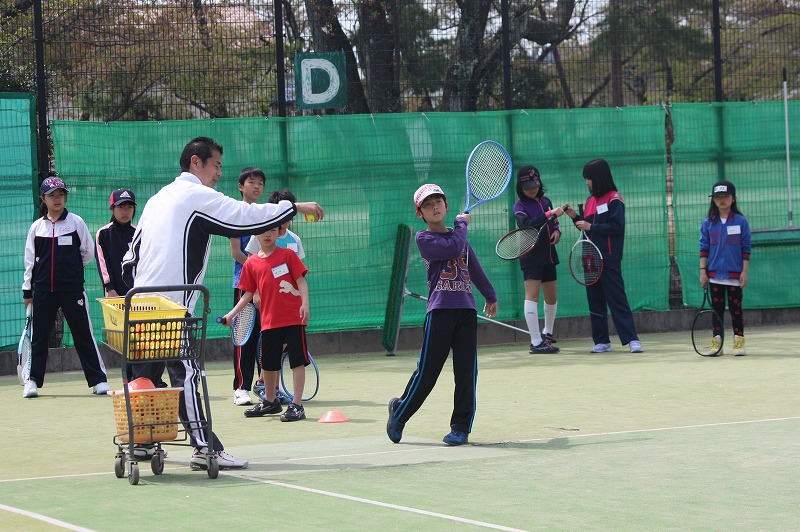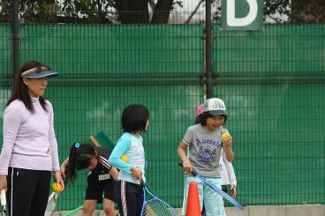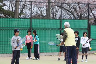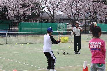 4月10日。こどもテニス教室(土)の練習です。