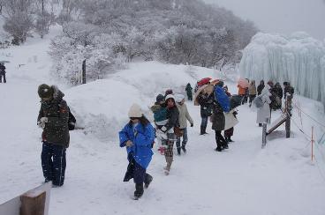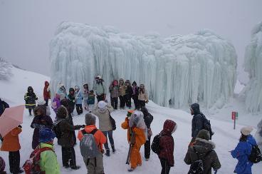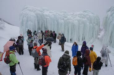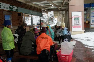 2月11日。雪の中、御在所山上でクラブ員交流会が開催され、樹氷や氷ばくに温泉を楽しみました。
