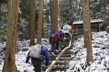 12月20日。名所巡りウォークで神森地区のカニ池や賀保寺などをめぐりました。